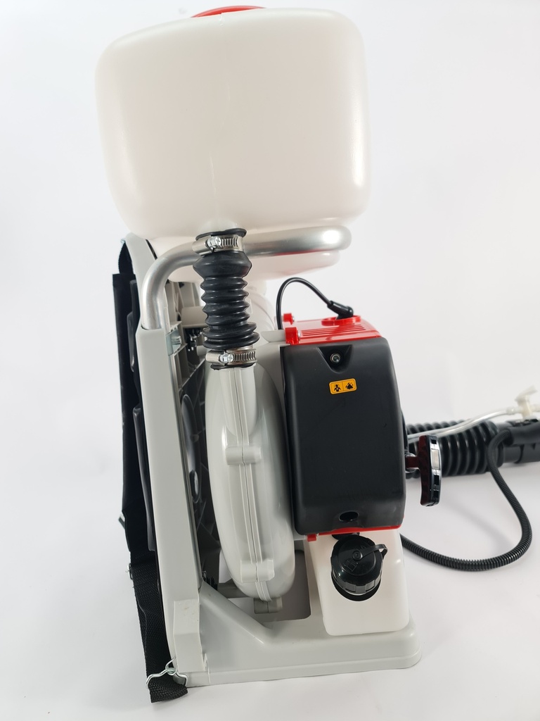 Potencia max: 3,5 hp @ 6000 rpm Cilindrada: 56,5 cc Caudal de aire max: 1.152 m3/h Cap. Tanque: 14 L Alcance Horizontal: 15m
